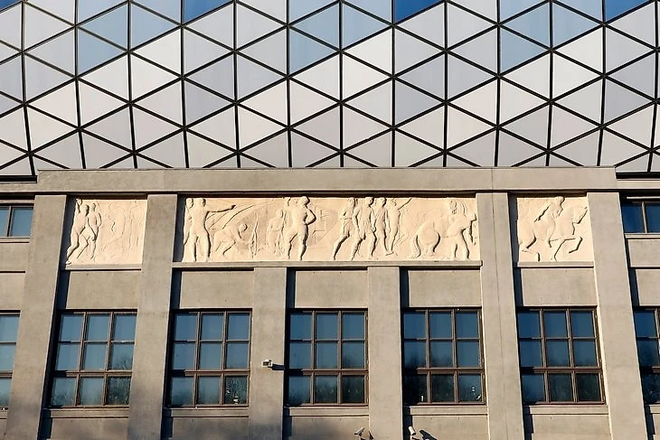 «Надо было отреставрировать западную трибуну не просто в том же облике, а сделать ее идентичной оригиналу, – продолжает Макарищев. – Команда проекта поднимала архивные фото и видео, смотрела чертежи и эскизы вплоть до того, какой состав был у штукатурки. Повторили ее один в один – она называется «светло-серо-голубая с искоркой». Нашли часть архивных документов из 1928 года, по ним и реализовывали. Если в солнечный день приглядеться, то можно эту искорку заметить. Вторая история была связана с барельефом Меркурова – это отдельная наша гордость, собирали его по крупицам. Когда объект перешел к стадии разбора и демонтажа, наняли группу реставраторов, которые все это аккуратно упаковали в 200 ящиков. 5 лет группа реальных энтузиастов из пепла и праха восстанавливала этот барельеф».