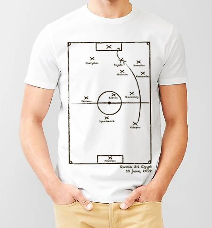В интернет-магазине есть и другие связанные с футболом приколюхи. Например, футболка, на которой нарисована голевая комбинация в ворота Египта, которую завершил Дзюба. А Черчесову посвящен целый цикл маек и бокал с усами надежды.