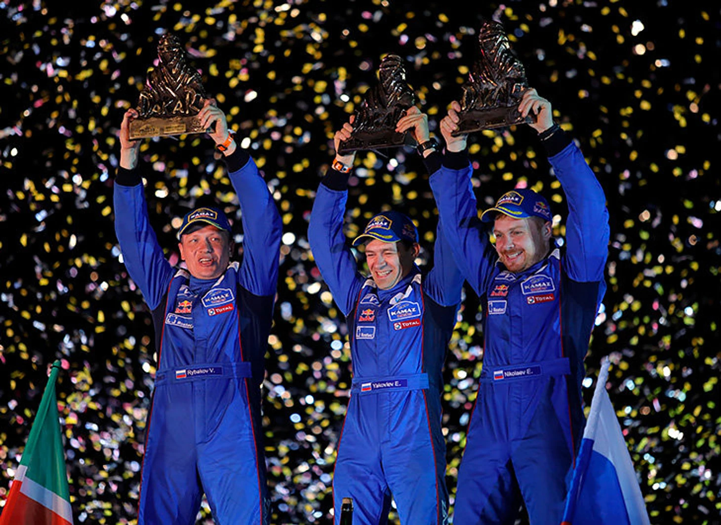 Похожее конфетти запустили в небо после очередной победы «КАМАЗа» на Дакаре. Эдуард Николаев и его экипаж – первые после сумасшедшего ралли-рейда.