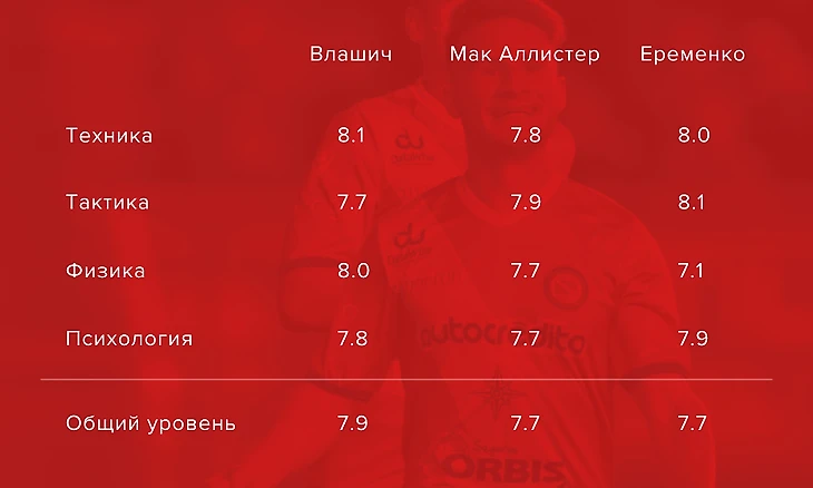 4-3-3 в роли атакующего полузащитника, или 4-2-3-1 которая на данный момент является основной для родного клуба. Все оценки взяты из анализа и сопоставления качеств Мак Аллистера с игроками сходной позиции.