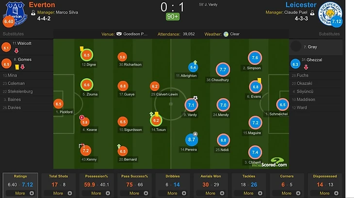 Наверняка многие уже видели кучу таких игр и знают, что они начинают раскачиваться либо после успешной замены, либо когда команды начинают уставать. В первой половине игры и Лестер, и Эвертон играли с серьезными энергозатратами. Команды пытались создавать моменты, но защита просто переигрывала. «Ириски» выглядели чуть лучше.