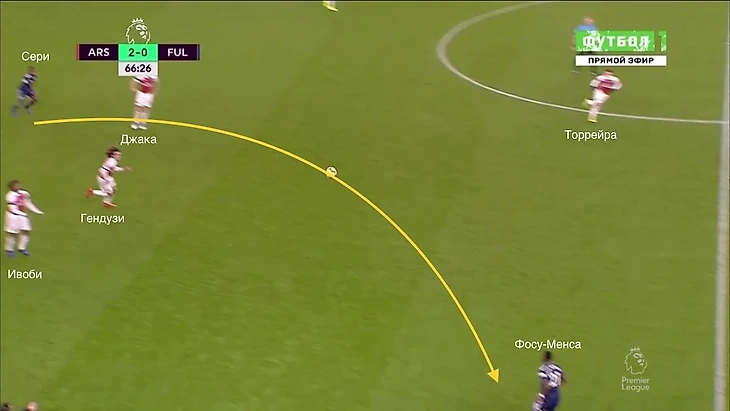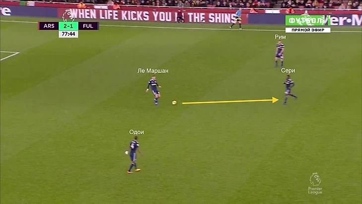 Кэрни пасует на Сери, тот в касание переводит мяч на Фосу-Менса.