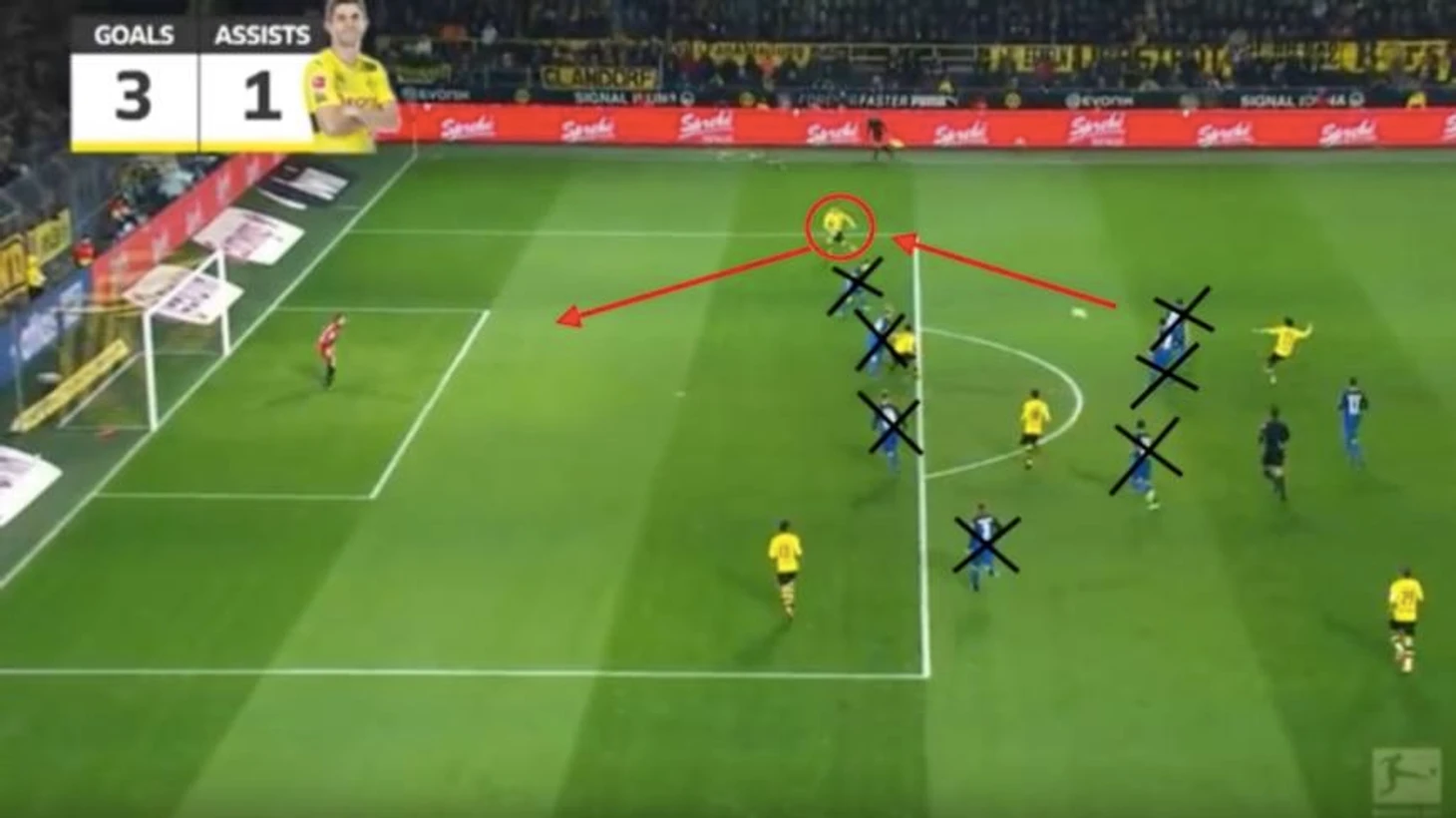Синдзи Кагава этой голевой передачей на Пулишича отрезал 7 игроков «Хоффенхайма» и, согласно Impect-анализу, заработал 7 баллов.