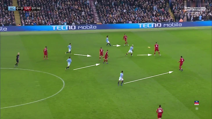4. Кроме нового тактического элемента, была и классика – прессинг «Ливерпуля» против розыгрыша «Сити».