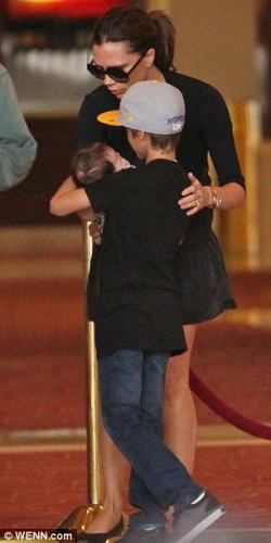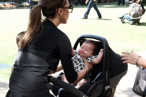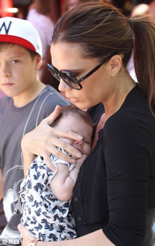 Виктория Бэкхэм с малышкой Харпер, которой восемь недель от роду.