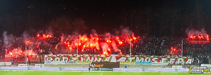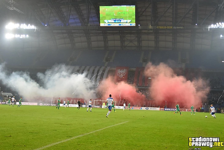 В рамках кубка Польши варшавская «Легия» приехала в Глогув к местному «Хробры». Хозяева хорошо подготовились к статусному матчу: флаги, пиротехника, серпантин.