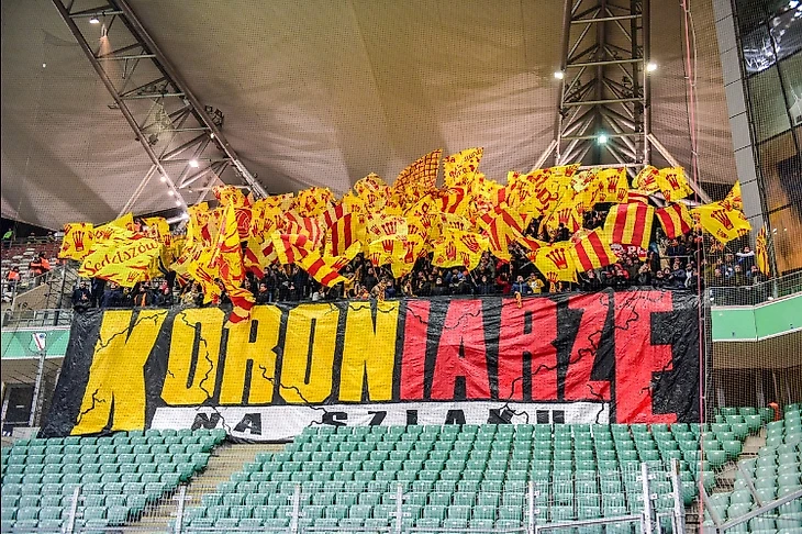 «Легия» - «Корона». Гости с лицевиком «Короняже» и большим количеством флагов в цветах своей команды.