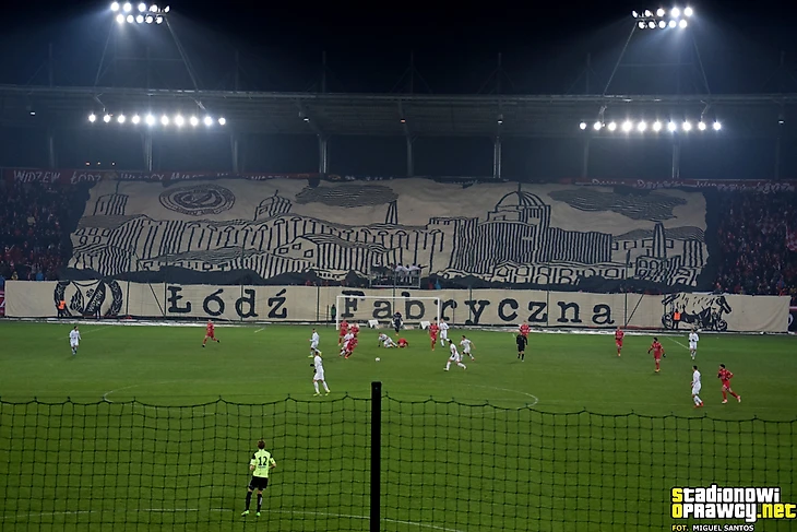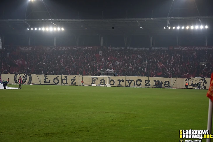 Какой же обзор без фанатов «Видзева»? На этот раз лодзинцы отметились перфом из двух частей. Первая состояла из баннера «Лодзь фабричная» и секторувки.