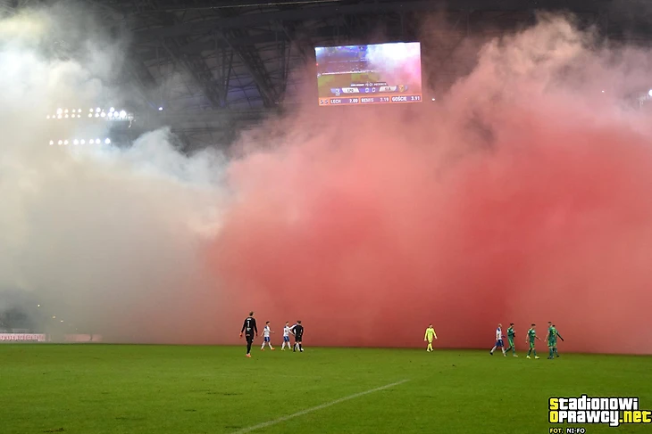 В начале декабря в Познане ежегодно отмечают годовщину Велькопольского восстания, начавшегося в конце декабря 1918-го. 7-го декабря «Лех» принимал вроцлавский «Слёнск». Естественно не обошлось без патриотической оправы: баннер «Гордые Велькополяне», ленты в цветах польского флага и бело-красный дым. Арбитру пришлось в первый раз приостановить матч из-за сильного задымления.