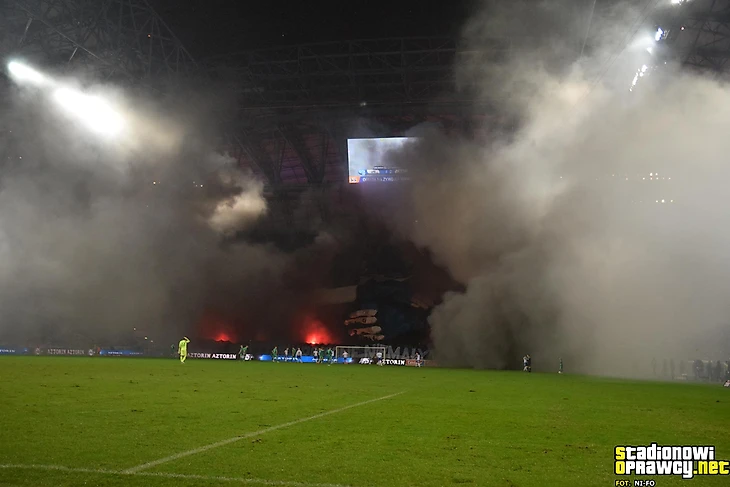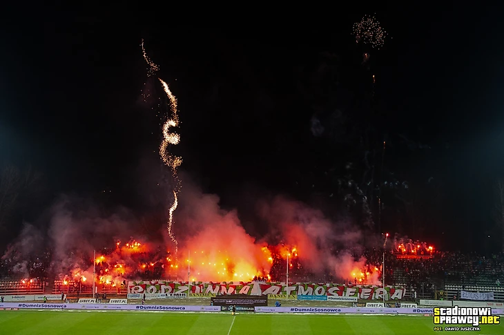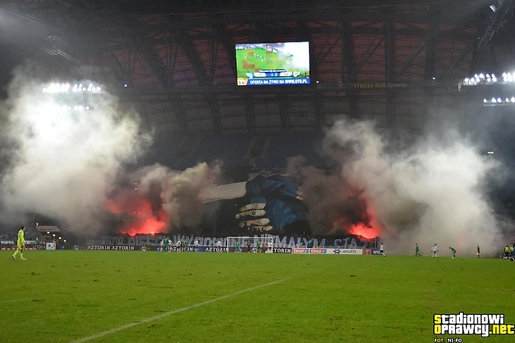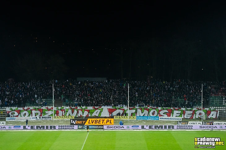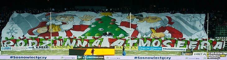 После матча против «Пяста» варшавяне играли в Сосновце. Фанаты обеих команд уже давно дружат, поэтому матч не мог обойтись без оправы: баннер «Семейная атмосфера», новогодняя секторувка и пирошоу с фейерверками на десять минут.