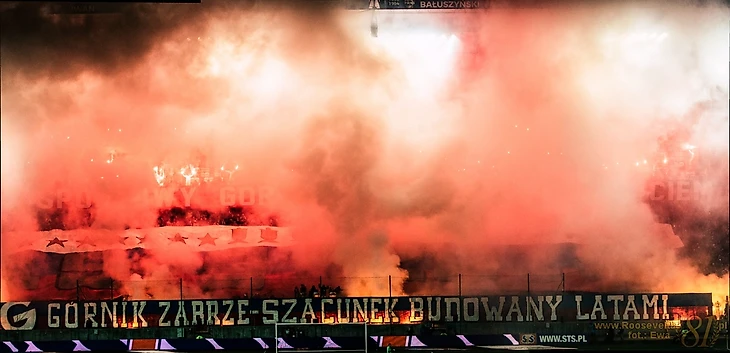 Фанаты «Гурника» 14-го и 15-го декабря отмечали 70-летие своего клуба. Сначала в пятницу фанаты забжан зажгли 1948 (год основания клуба) файеров около домашнего стадиона, выложив из них букву G.