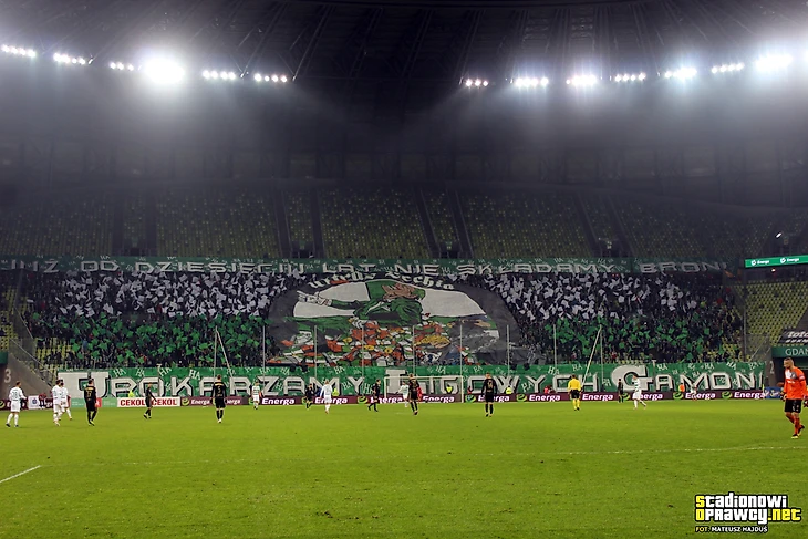 9-го декабря в Гданьске встречались лидеры чемпионата. Гданьчане подготовили патриотическую оправу «WRONa орла не победит» WRON (Wojskowa Rada Ocalenia Narodowego) - административный орган, действовавший в ПНР с декабря 1981-го по июль 1983-го. Главной целью данного органа была борьба с оппозицией, в том числе с движением «Солидарность» , и сохранением действовавшего режима.