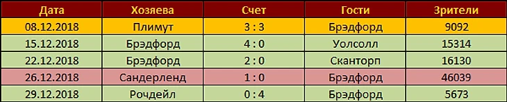 В декабре "Брэдфорд" провел пять игр, из которых три выиграл и одну свел вничью.