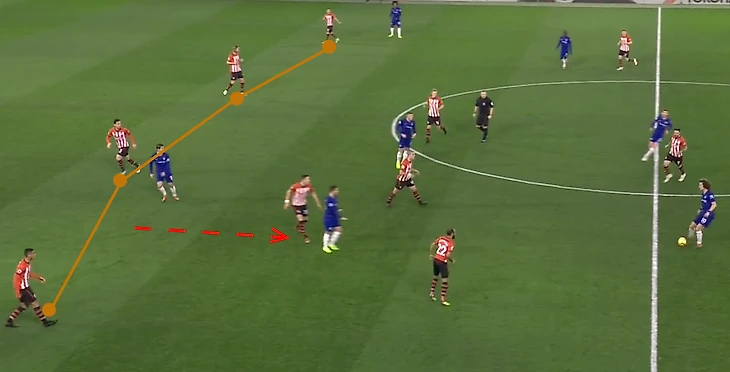 И только если «Саутгемптон» переходил в совсем уж высокий прессинг, Ингс бросал подопечного, но тут же кто-то центральных полузащитников сменял его в роли опекуна.