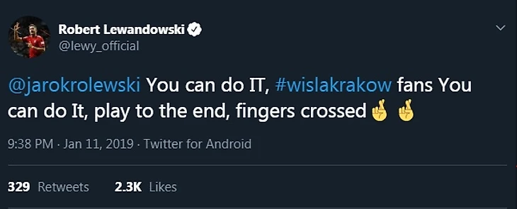 Слова поддержки краковской «Висле» высказали Роберт Левандовски и Матье Фламини, а также дортмундская «Боруссия»
