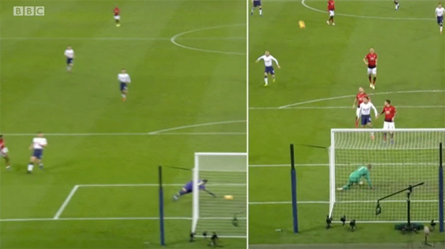 Де Хеа знал, что Кейн хотел ударить поперек. Такое ощущение, что целил прямо в Де Хеа, но это потому что вратарь так расположен. На лице Льориса можно видеть разочарование».
