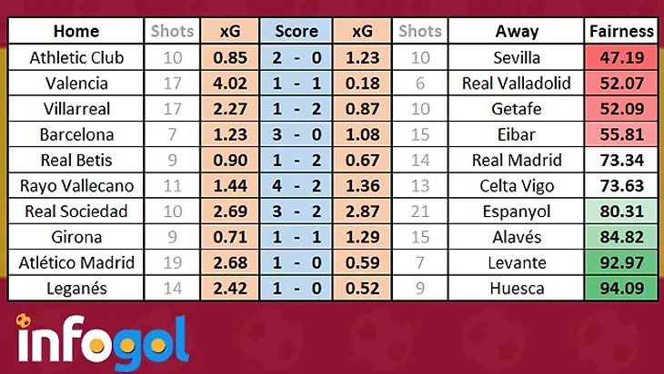 Оценка справедливости результатов 19-го тура Ла лиги от Infogol