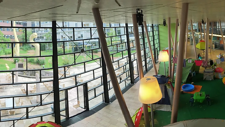Пристройка на верху – Дом Роналда Макдональда. При необходимости там могут разместиться родители детей.