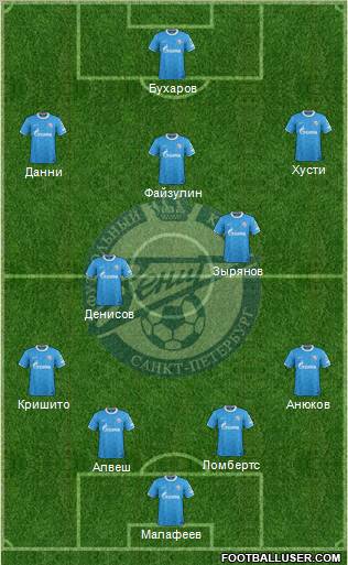 «Зенит»: Малафеев – Анюков, Ломбертс, Алвеш, Кришито – Хусти , Зырянов, Файзулин, Денисов, Данни – Бухаров.