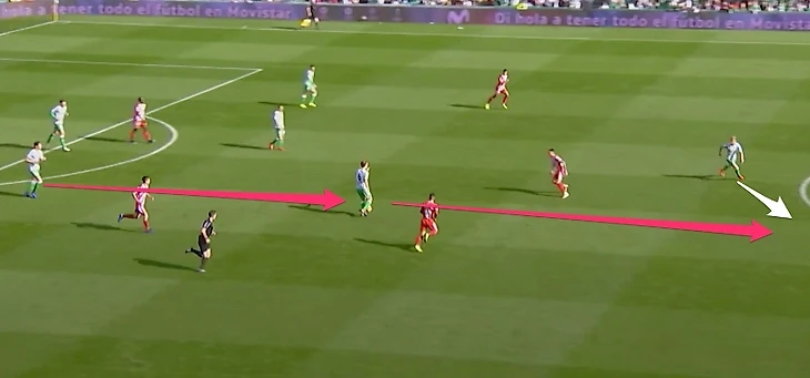 Завершая тему позиционной игры Кике Сетьена, нельзя проигнорировать высоту расположения фланговых футболистов. С учетом атакующей направленности команды и того, сколько времени они обычно проводят во владении, тяжело назвать Тельо и Баррагана (и тех, кто выходит вместо них) именно фулбеками. По сути фланговые игроки «Бетиса» выступают полноценными нападающими.