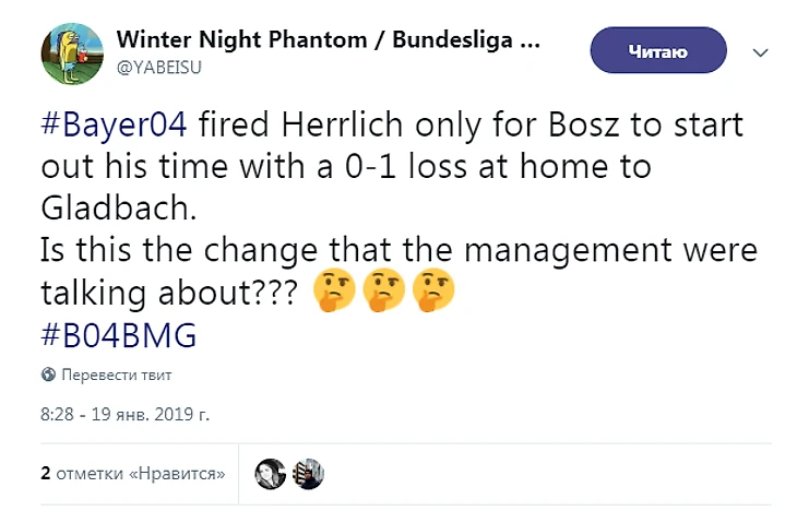 "Байер уволил Херрлиха лишь для того, чтобы Бош начал с поражения Гладбаху 0:1 у себя дома? Это действительно те перемены, о которых говорило руководство?"