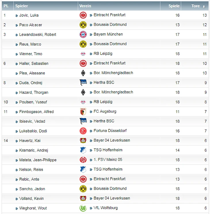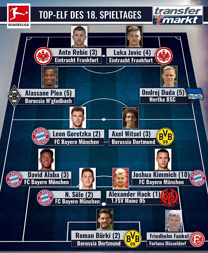Лука Йович оформил свой 13-ый гол в сезоне; в последний раз после 18-ого тура у игрока «Айнтрахта» столь же много забитых голов было на счету Александра Майера в сезоне 2014/15. В том сезоне Майер стал лучшим бомбардиром чемпионата.
