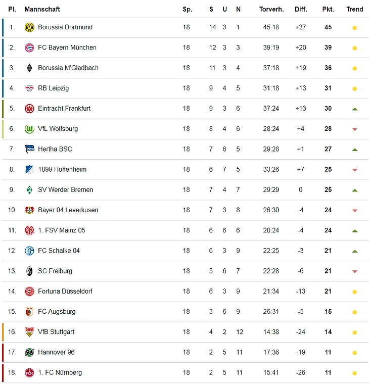 Только в сезоне 2010/11 «Боруссия» имела после 18-ого тура больше очков, чем сейчас (46 против нынешних 45).