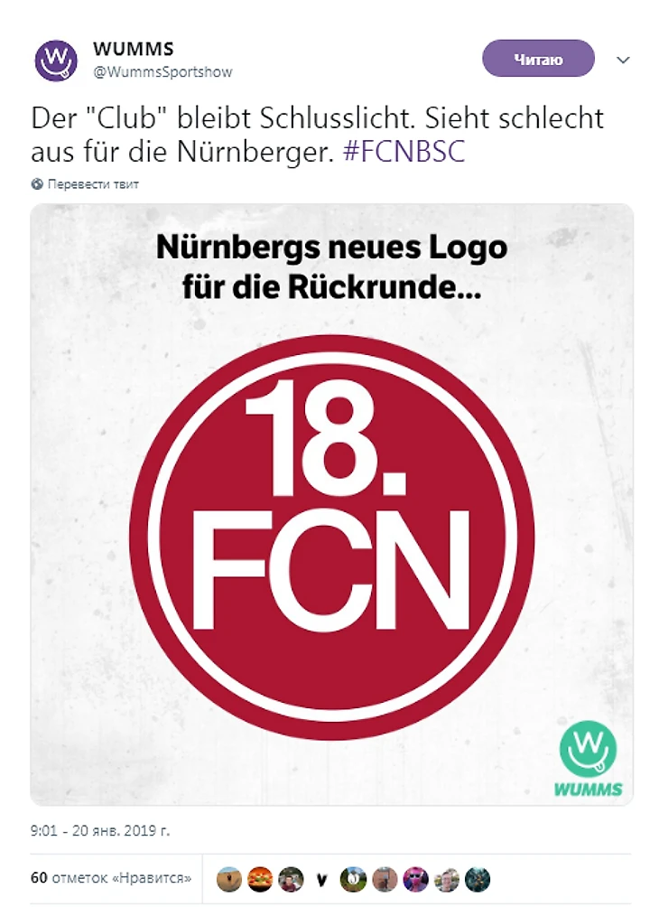 "Нюрнберг снова отстаёт. Выглядит печально. Вот новая эмблема "Нюрнбернга" на вторую половину сезона..."
