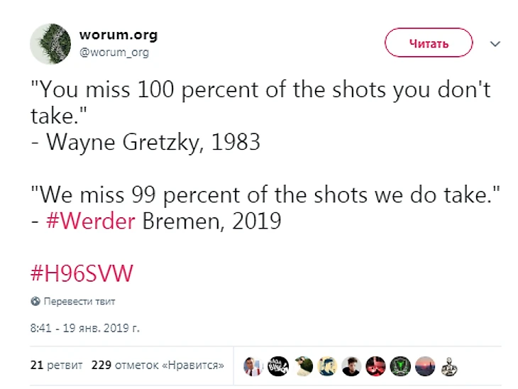 "Вы не забиваете 100% из тех ударов, что Вы не наносили" - Уэйн Гретцки.