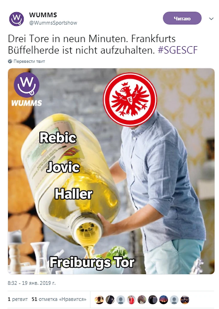 "Три гола за девять минут. Стадо буйволов во Франкфурте не остановить."