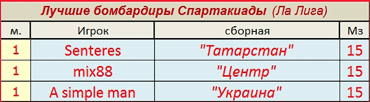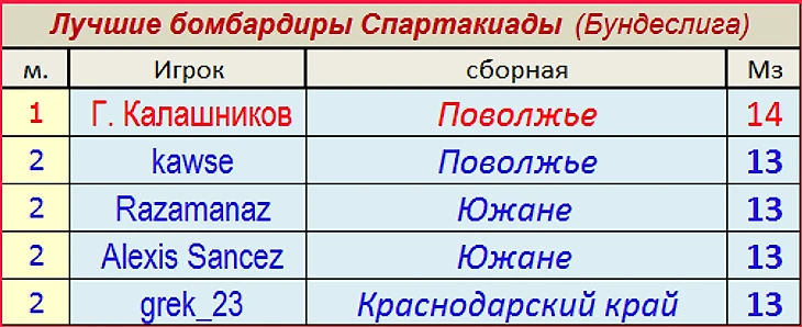 Бундеслига только вернулась на поля Спартакиады, после небольшого перерыва... И здесь у нас Чемпион прошлого года с краснодарской пропиской в борьбе за самые высокие места... Но пока лидер - мощнейший белорусский коллектив... в призах и Поволжье со своим стреляющим очередями Калашниковым)...