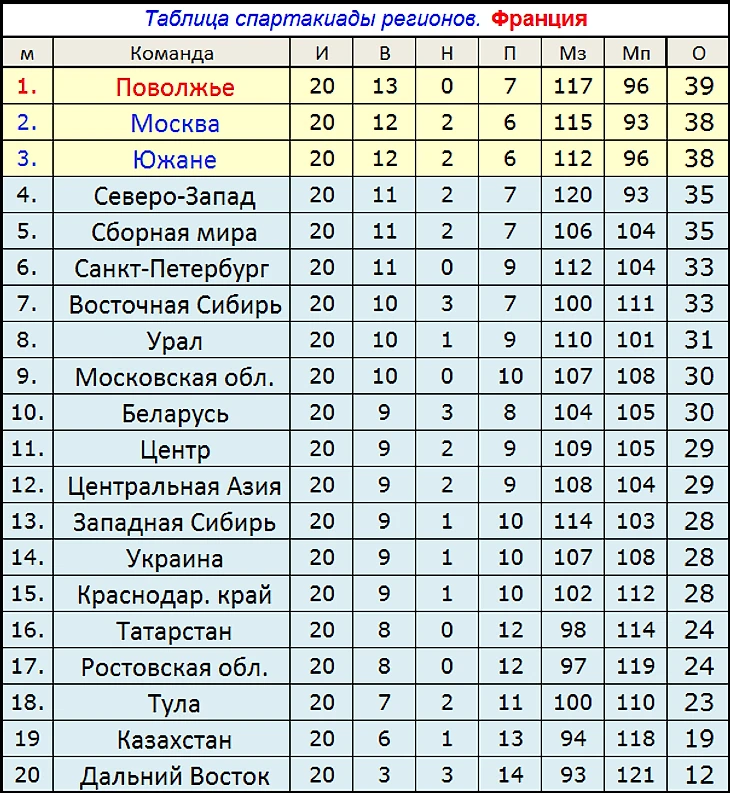 Франция... Здесь лидирует команда Поволжья, которая в прошлом сезоне выигрывала РПЛ... Но если глянуть на текущую таблицу, то понимаешь, что вся борьба здесь только начинается... 6 очков от 7 места... На французских полях отмечу уверенную игру южной и московской команд...