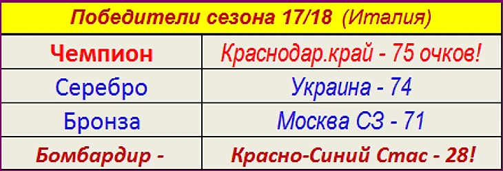 Италия! А вот тут то у нас в тройке лидеров большие перемены... Это лучший Чемпионат у команд Мира, Центра и Урала... вот тут то и шансы у каждого коллектива вписать себя в список Победителей сезона... интересен будет финиш...