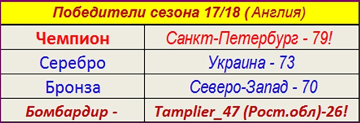 АПЛ, чемпионат не знающий перерывов... уже пройдена дистанция в 23 тура... Питерский чемпион прошлого года - вновь на коне, вновь лидирует! Парни из этого коллектива - настоящие гуру английского чемпионата... Но... пока их конкурент - команда Казахстан идет очко в очко... Впереди еще ничего не ясно...