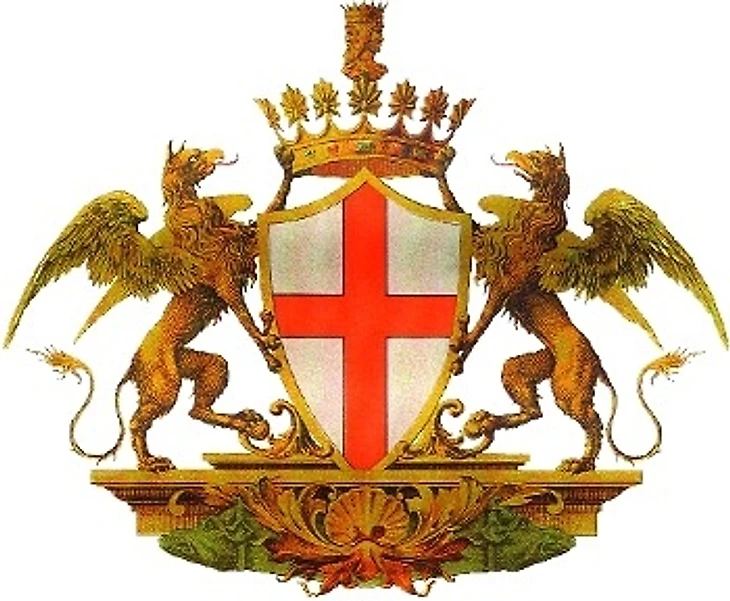 Сразу здесь внимание привлекает верхняя половина эмблемы, очень напоминающая флаг родины Дэвида Бэкхема и Уэйна Руни. Из-за него генуэзский клуб получил одно из прозвищ – «англичане». Но есть ли здесь реальная связь с британским наследием – вопрос спорный. По одной из версий, «Дженоа» создавали по аналогии с командами Туманного Альбиона. И все же, стоит взглянуть на герб Генуи, и все встанет на свои места.