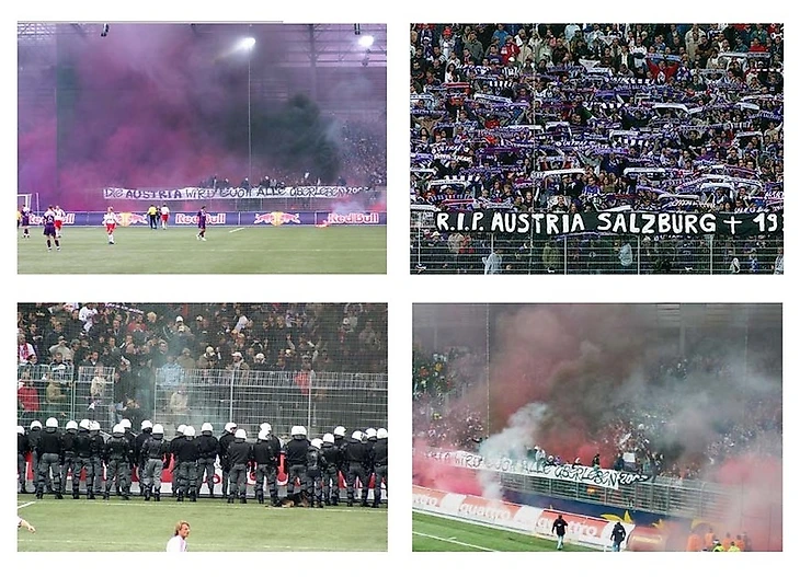 Представь себе следующую ситуацию. Ты выдвигаешься на первый в сезоне матч своей команды, одет как обычно – клубная футболка, шарф, флаг – но идешь ты, только для того чтобы услышать от «своего» стюарда: «а тебе здесь не рады, парень». Ситуация может показаться смешной и нереальной, но именно в такой ситуации оказались фанаты Аустрии Зальцбург этим летом (2005), после того как их клуб забрали производители всем известных напитков.