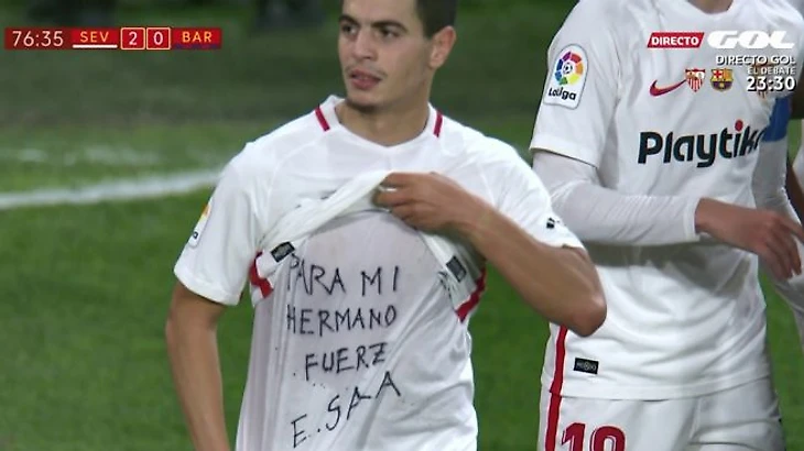Нападающий «Севильи» Виссам Бен-Йеддер, забив гол:
