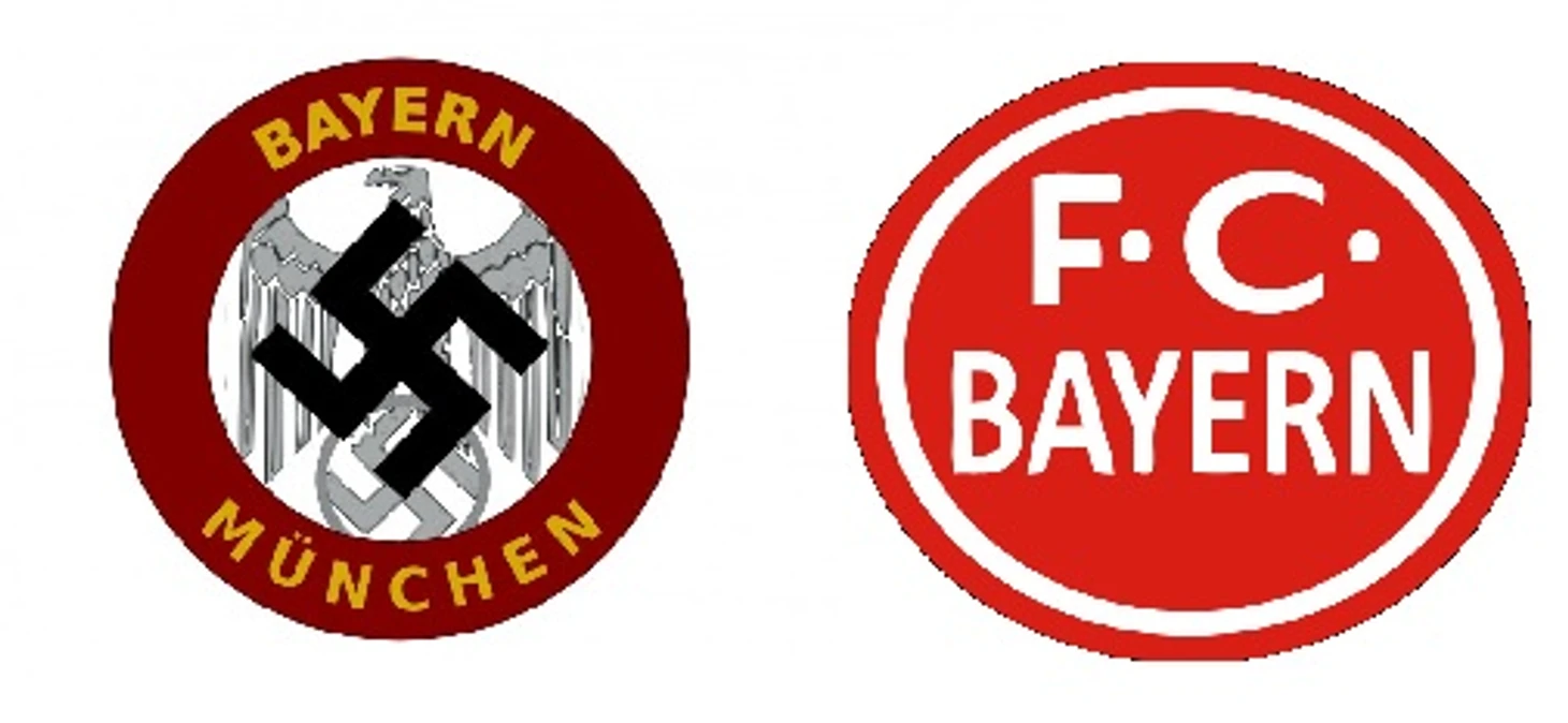Что ещё из интересного? Ну, посмотрите, например, на логотип «Баварии» гитлеровской эпохи, а также на его преемника. Многие подмечают иронию, что послевоенная эмблема мюнхенского клуба очень напоминает современную у «Нюрнберга», увязывая это со знаменитым Нюрнбергским процессом.