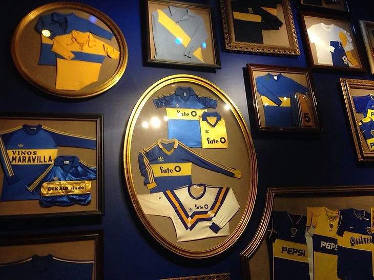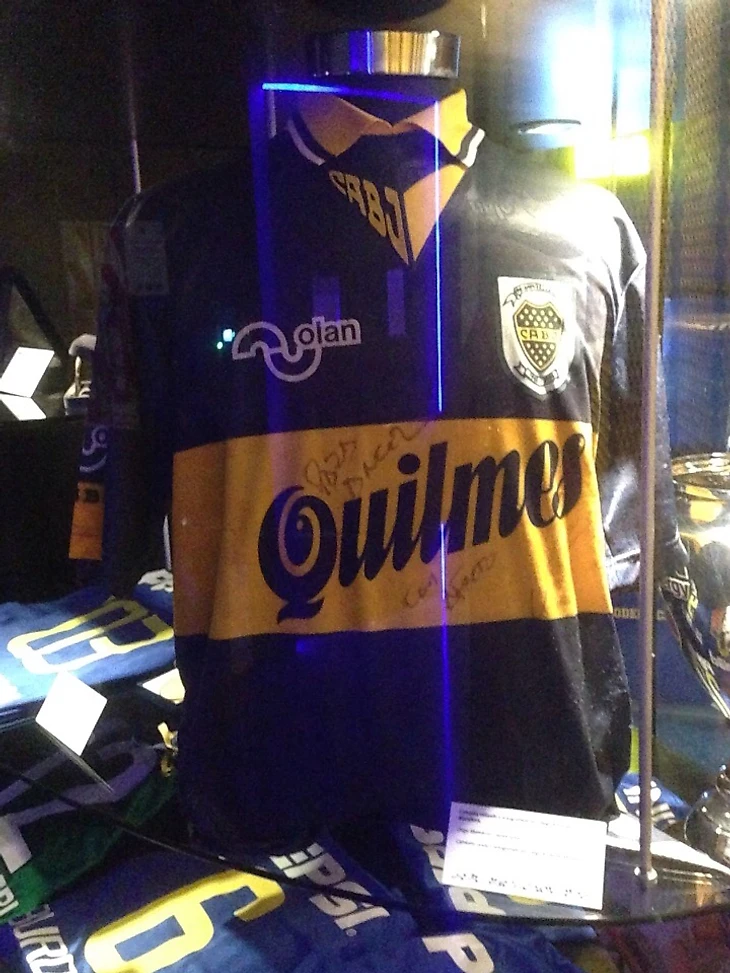 Есть артефакты более позднего времени, например, раскрашенная в цвета «Боки» гитара Ленни Кравица (он играл на ней во время выступления на «Бомбонере») или футболка с подписью Марадоны.