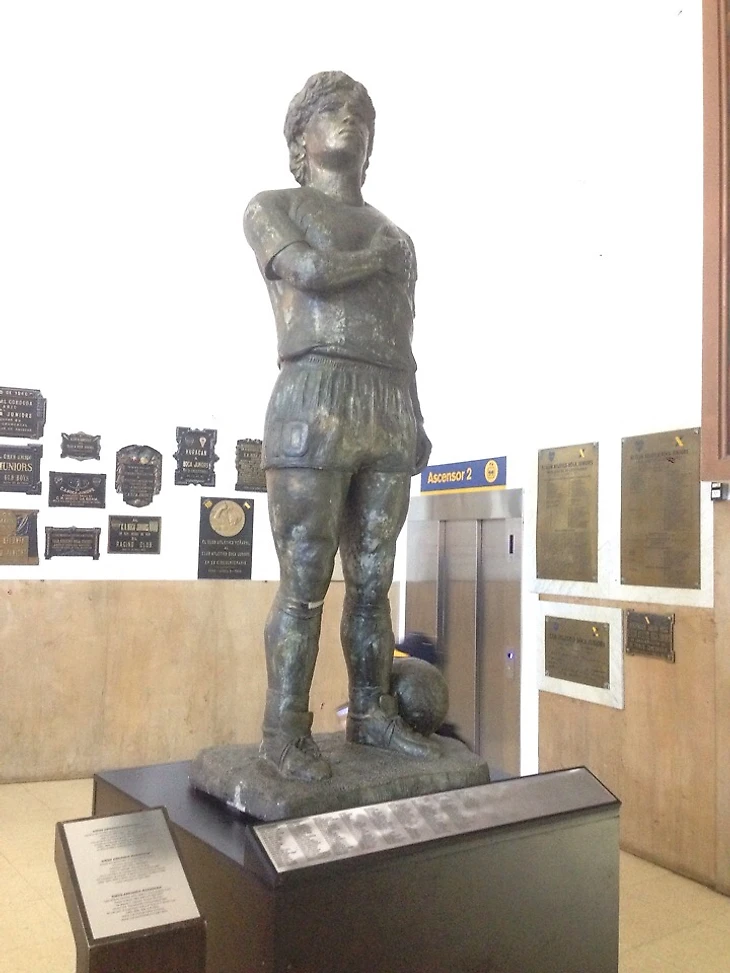 После нас привели в Зал славы. Здесь установлены статуи значимых членов клуба. Конечно, Марадона.