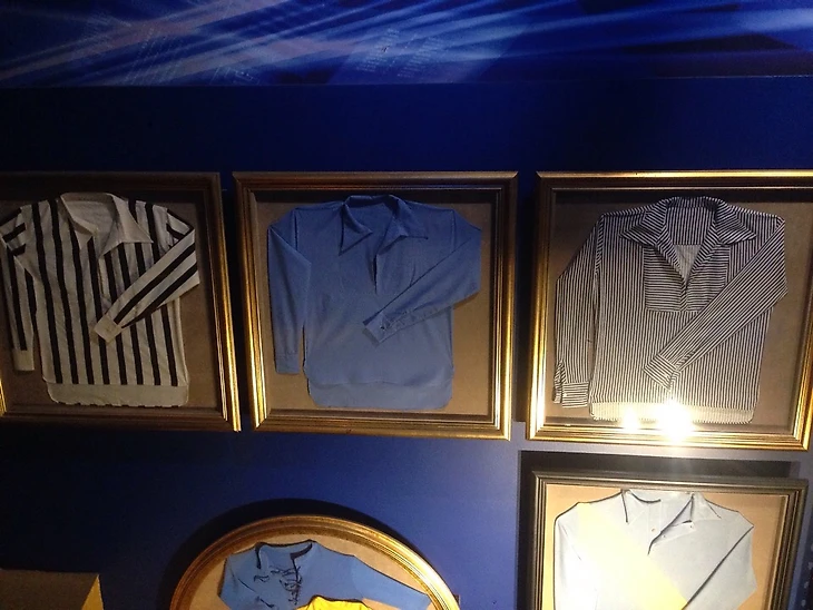 На второй этаж ведет винтовая лестница. На стене рядом с ней висят игровые футболки «Бока Хуниорс» за всю историю. Вот первые игровые комплекты.