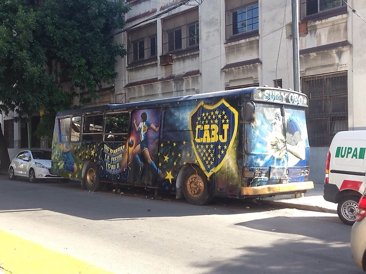 Гуляя по району, конечно, сразу замечаю, что среди всего многообразия красок, все же главные цвета здесь – синий и желтый. Точнее синий и золотой, как предпочитают говорить болельщики «Бока Хуниорс». В эти цвета окрашены кафе, простые дома, на стенах и автобусах много различных граффити.