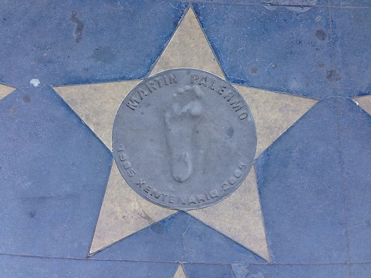 На тротуаре вокруг стадиона располагаются звезды легенд клуба. У каждой – надпись с именем игрока и отпечаток его ступни или ладоней, если это вратарь. Вот ступня Мартина Палермо.