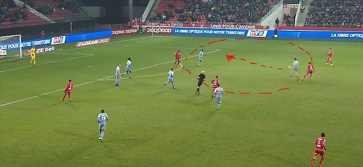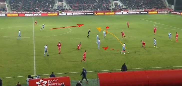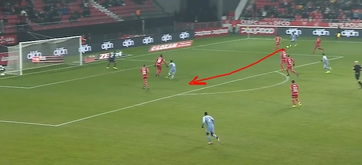 Как показательна атака Монако в этом эпизоде. Видим отличную позицию Балло на кромке поле, плюс, отличная свободная зона, которая позволяет дать моментальную передачу в край.