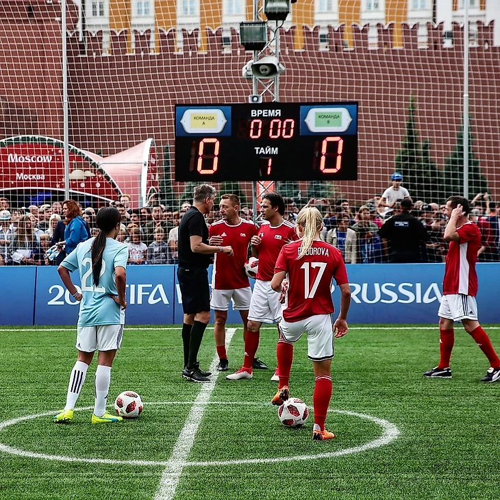 Всего через четыре дня после исторического финала она уже была на Красной плошади. Матч Легенд FIFA собрал множество столь знакомых нам звезд: Диего Форлан, Кафу, Лотар Маттеус, Мичел Сальгадо, Тихонов, Смертин, а также две девушки - Федорова и англичанка Алекс Скотт.