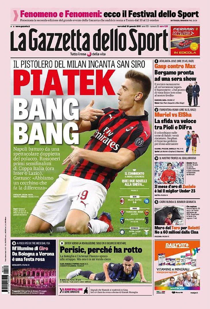 Стрелок «Милана» очаровал «Сан Сиро». «Наполи» побеждён поразительным дублем поляка. Россонери – первые полуфиналисты Кубка Италии (теперь попадут на «Интер» или «Лацио»). Гаттузо: «У нас есть снайпер, который делает результат».