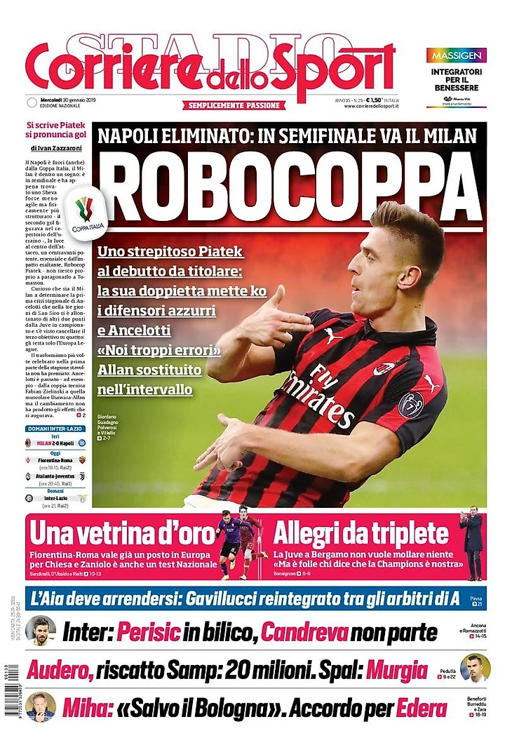 РобоКубок. Заголовки Gazzetta, TuttoSport и Corriere за 30 января