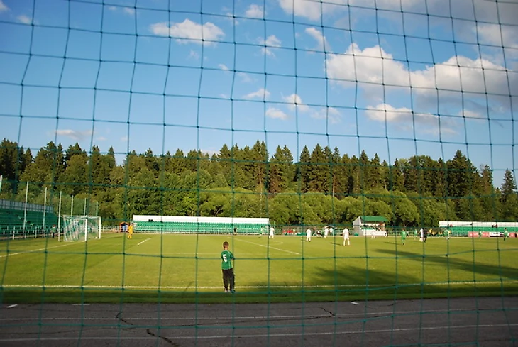 Зеленоградский стадион «Ангстрем» встретил необычайно суровым для Третьего дивизиона контролем безопасности. На входе металлоискатель, рядом – несколько полицейских. Всех входящих подвергают досмотру – просят выложить все металлическое и проверяют сумки. Это немного странно, учитывая тот факт, что на большинстве матчей этого уровня полиции или вообще нет, или ее представляет один скучающий служитель порядка. А тут – так. В рюкзаке было три пакета вина (несмотря на пакеты, вино неплохое – итальянские pinot grigio и primitivo merlot). Сразу сказал: в рюкзаке вино, можно его здесь оставить? Полицейские отнеслись к этой таможенной декларации вполне дружелюбно, сказали: да, без проблем, ставьте вот тут, под столиком. Попросил их запомнить меня и не отдавать посторонним. Полицейские поулыбались.