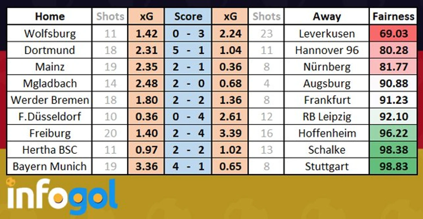 Оценка справедливости результатов 19-го тура Бундеслиги от Infogol