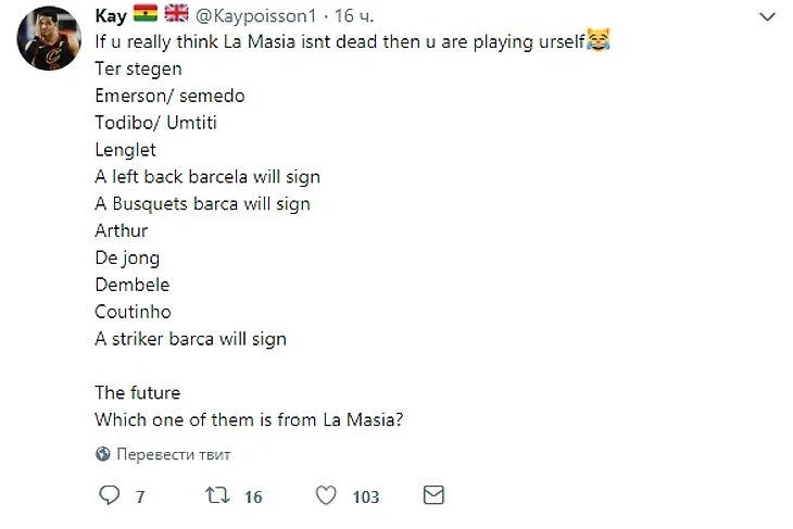 Прошлогодний антирекорд в гостевом матче против «Сельты» стал первым звоночком для всех тех, кто чтит наследие Кройфа, и пользователь твиттера @Kaypoisson1 предрек будущую основу ФКБ, которую уже сейчас приветствуют и обожают народные массы.